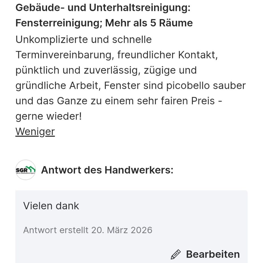 Wir sind stolz darauf, unseren Kunden hochwertige Reinigungsdienste anzubieten. Unsere Fachkompetenz und unser Engagement sorgen dafür, dass Ihre Räumlichkeiten stets sauber und ordentlich sind.